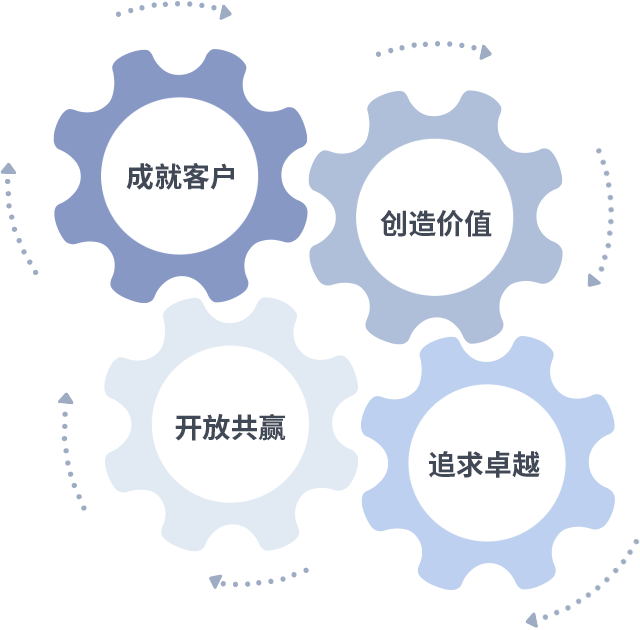 成就客户是一切决策的出发点,创造价值是衡量所有工作的标准,追求卓越是XK星空·(体育中国)官方做事做人的态度,开放共赢是XK星空·(体育中国)官方的格局也是最终的结果。价值观的齿轮环环相扣,推动着组织里的每个人不断向前。